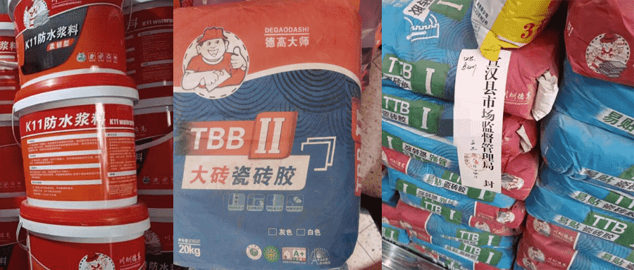 廣東梅州市監(jiān)查處1個(gè)售假門店,查扣8包德高大師瓷磚膠。