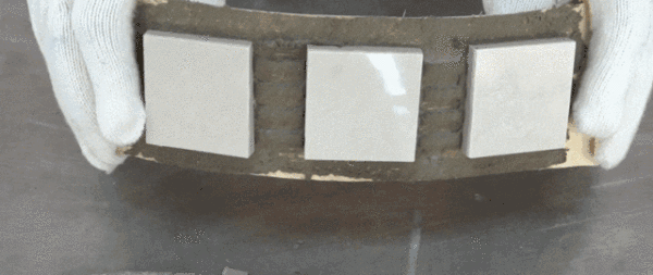 接下來,我們使用巖板瓷磚膠方案及普通方案,把磚貼到木板上。通過小實(shí)驗(yàn),對(duì)比兩者的柔性。