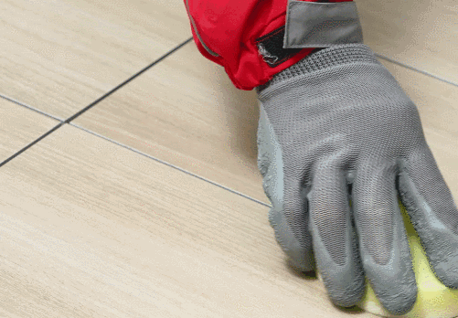 很多師傅在美縫時,會忽略做磚面保護(hù)。特別是遇到壓光磚、仿古磚、木紋磚,一旦粘結(jié)上美瓷膠,較難清理。