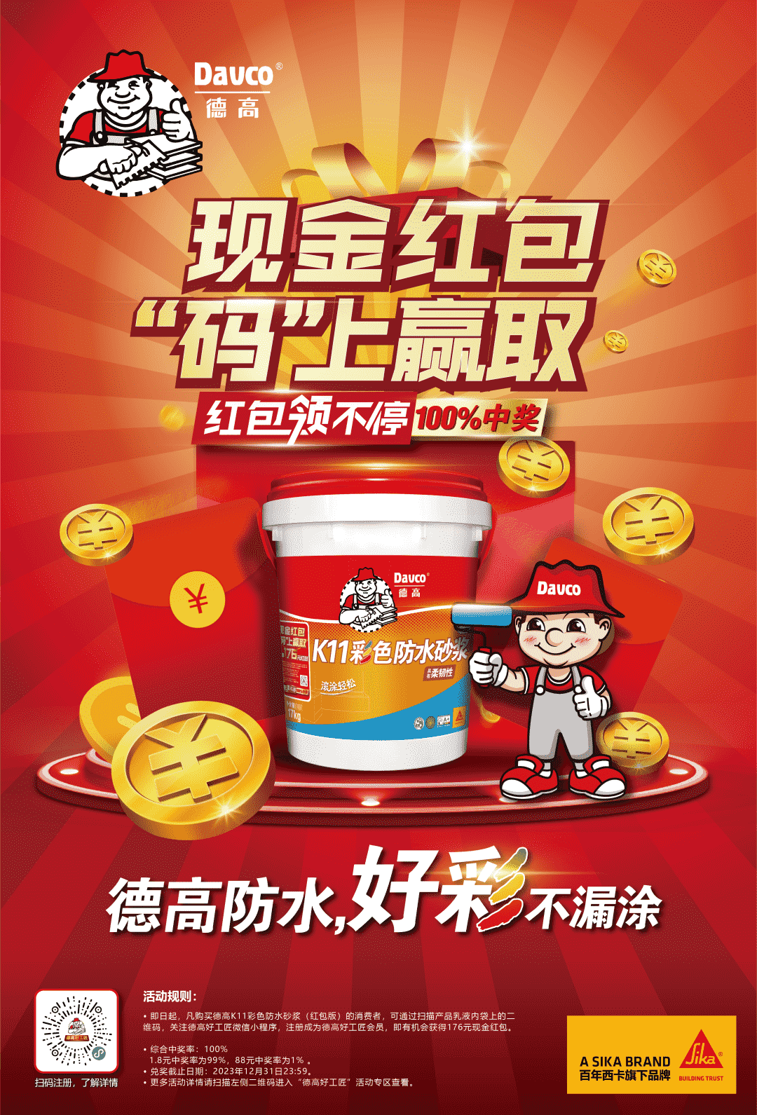 德高K11彩色防水砂漿,環(huán)保好防水,師傅用著輕松,業(yè)主好滿意!